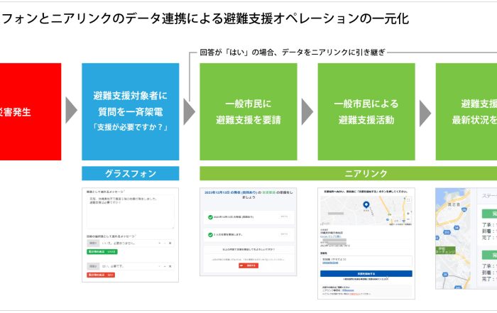 一方、グラスフォンfor防災やニアリンクは、避難時に支援が必要な人々(要避難支援者)のためのソリューションです。